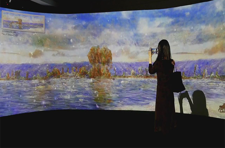 沉浸式的觀感體感:超過180度的環(huán)抱包圍圈,結(jié)合特定的燈光、音箱系統(tǒng)、數(shù)字影片,給參觀者營造出沉浸式的觀感氛圍,達到身臨其境的觀感體感;